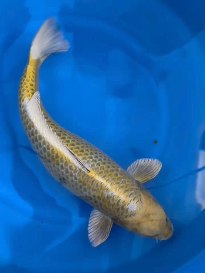 Beautiful 2-year-old female, Ogata Kogane Ochiba Japanese koi fish for sale, 58 cm, $3800.
